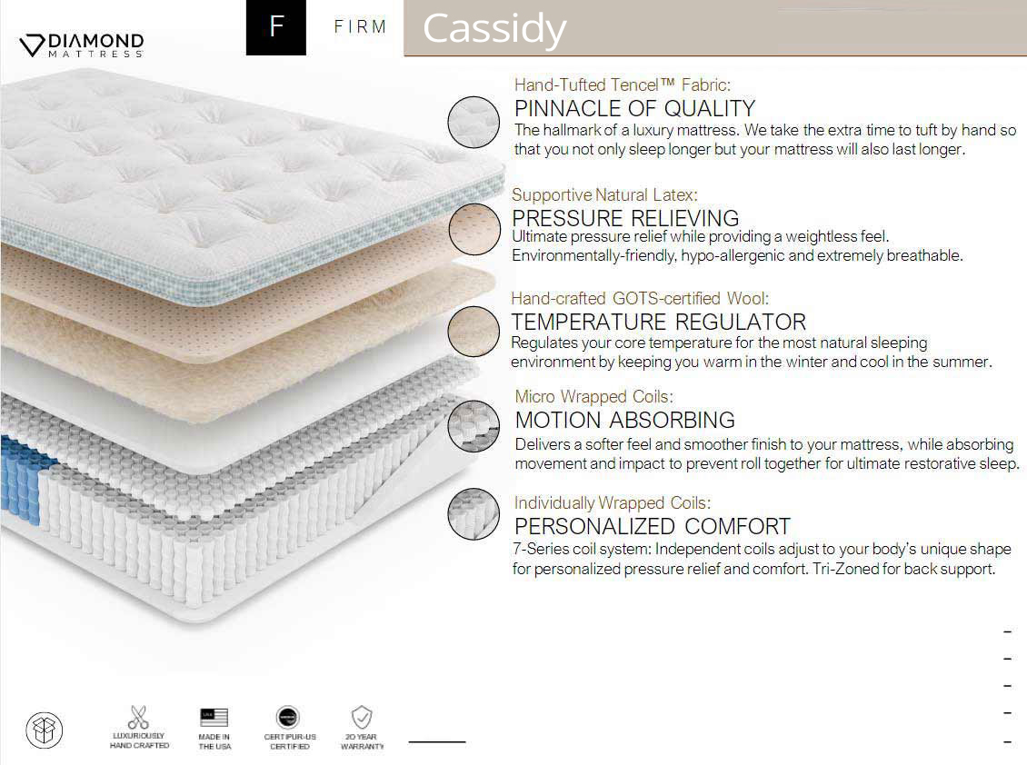 Hand-Tufted Natural Tencel FabricSupportive Natural LatexHand-Crafted GOTS-certified Wool1,386 Micro Wrapped Coils7-Series Patented Zoned CoilsFoam Encasement20-Year Warrant