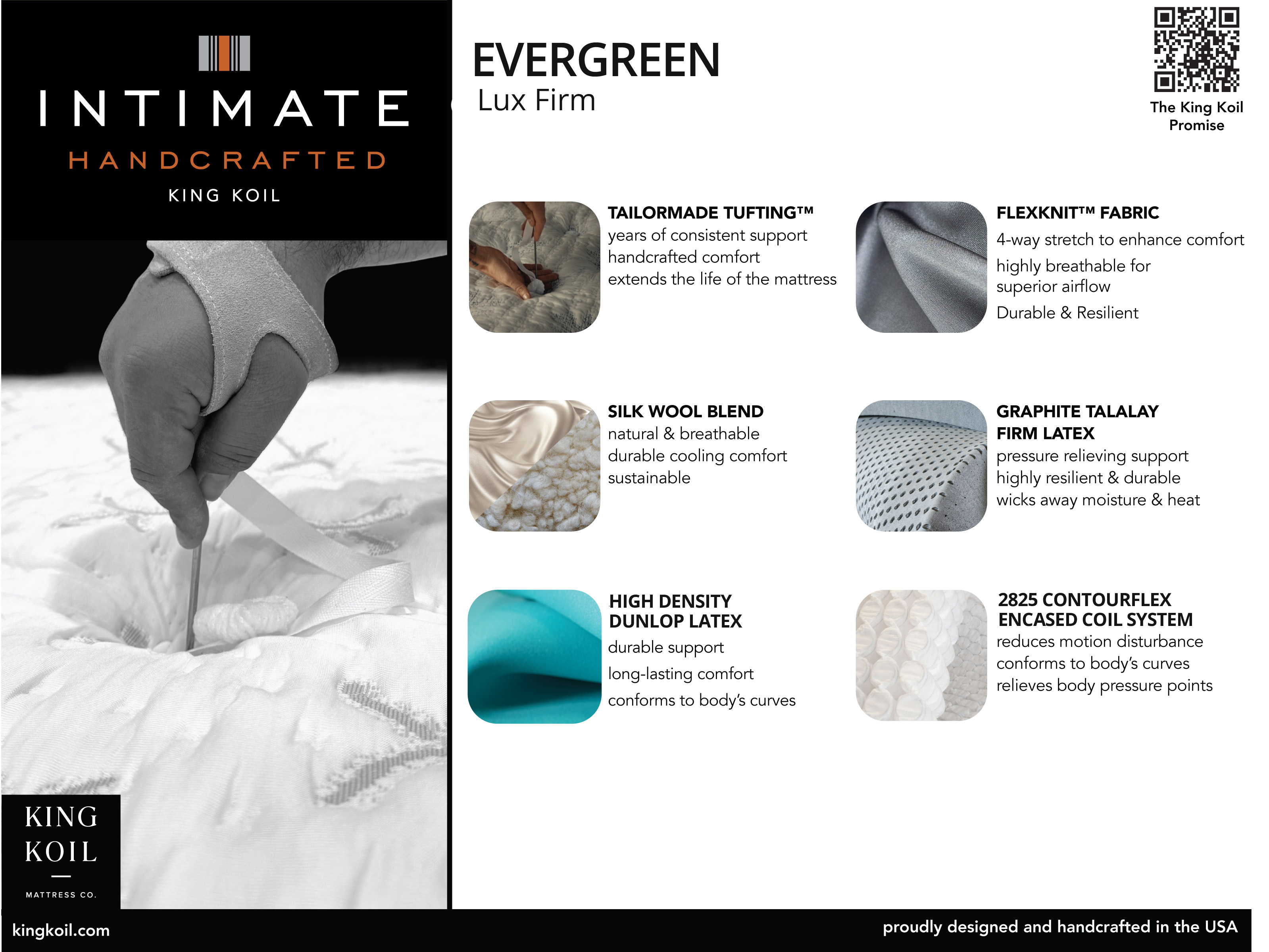 • Quilting Layers: Tencel Stretch Knit Fabric, Silk & Wool Fiber, Firm Quilt latex with Flex Knit™